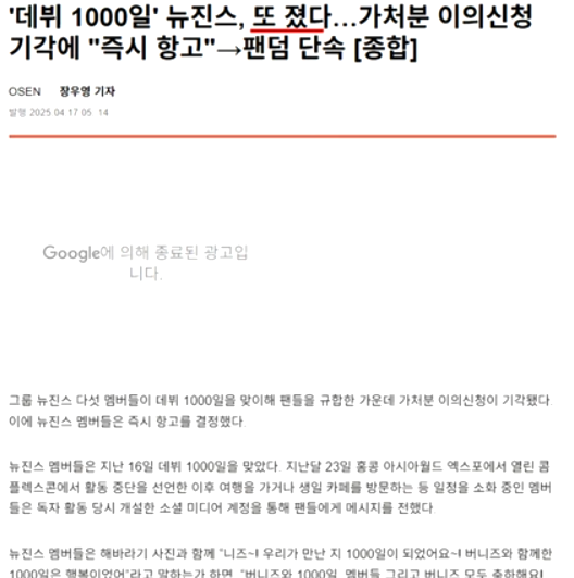 뉴진스는 이 상황을 받아들일 수 없다 며 항소했지만