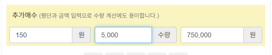 현재 371원의 코인이 150원까지 떨어진 상태입니다. 이 때 내가 총 5000개의 수량, 즉 750,000원을 투자해서 똑같은 코인을 구입했다고 하면