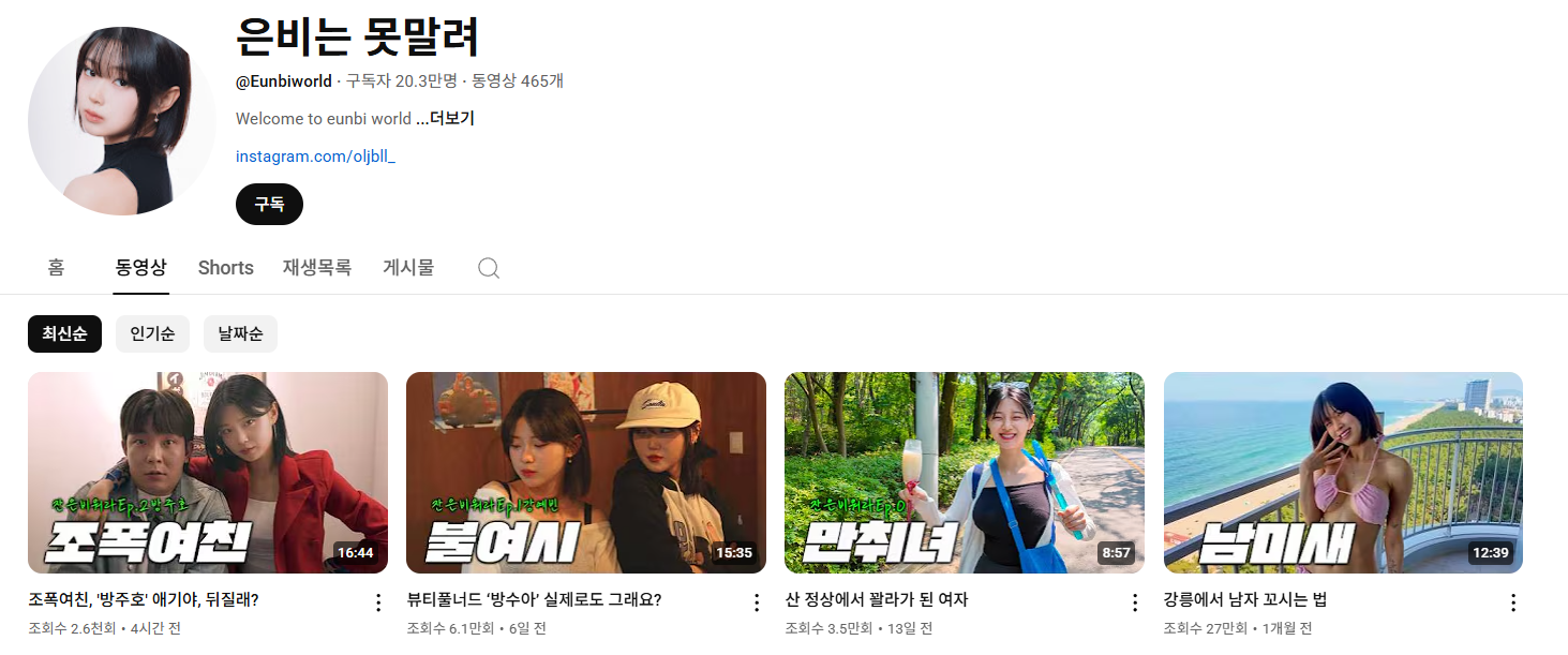 요즘 유튜브만 켜면 나오는 유튜버 장은비에 대한 프로필입니다. 대한민국의 인기 크리에이터로, 쇼츠나 스케치 코미디 등 다양한 SNS 플랫폼에서 활발하게 활동하고 있는 분입니다. 미모와 몸매로 남성분들의 사랑을 받고 있는 분이면서, 최근에 그의 하루를 담은 브이로그로 그의 평소 말투와 성격까지도 느낄 수 있었어요