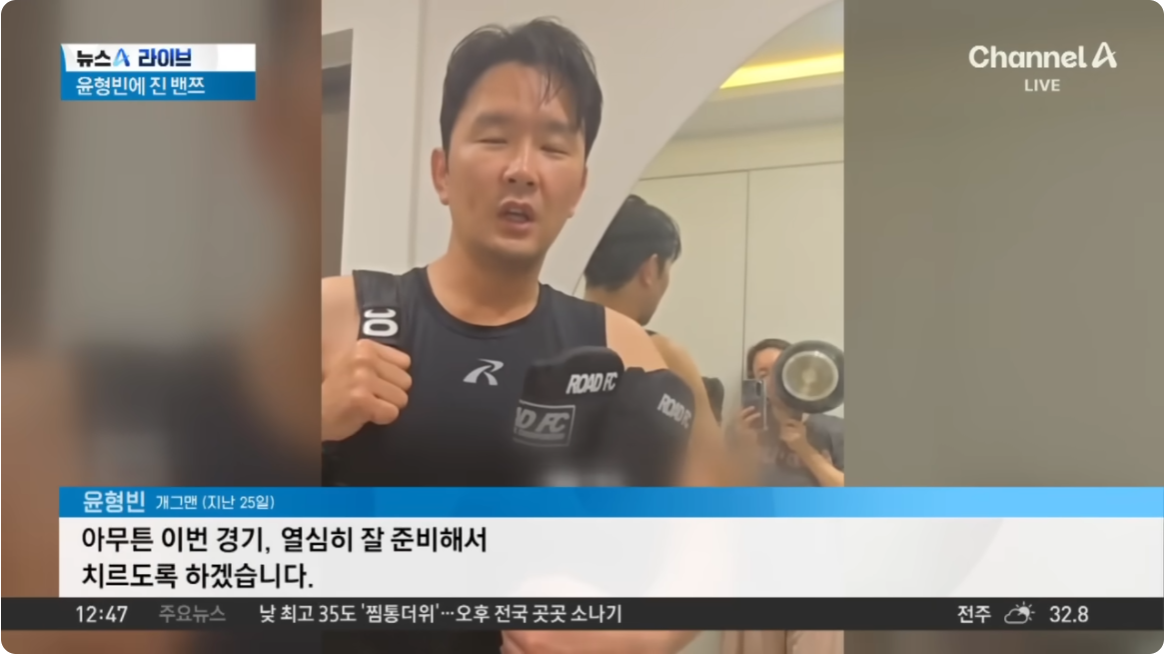 지난 2025년 6월 28일, 장충체육관에서 열린 ROAD FC 073 스페셜 이벤트, 윤형빈은 1라운드의 1분 42초 만에 TKO 승리했어요. 너무 쉽게 끝난 경기에, 시청자들은 "라면 물도 안끓었다" "누워서 보려고 했는데, 밴쯔가 먼저 누웠다" 등의 반응이 있었습니다.