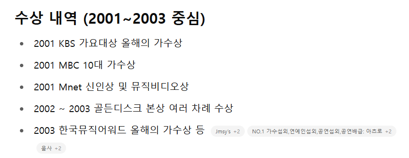 히트곡 및 수상내역