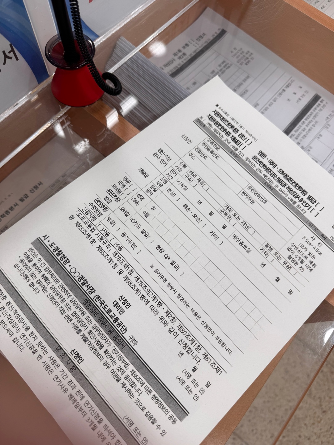 중랑 경찰서에 도착해서 주차를 하고, 종합 민원실로 들어가줍니다. 평일이라 그런지 사람이 많이 없었어요, 대기시간 없이 바로 국제면허증 발급을 받을 수 있었습니다.