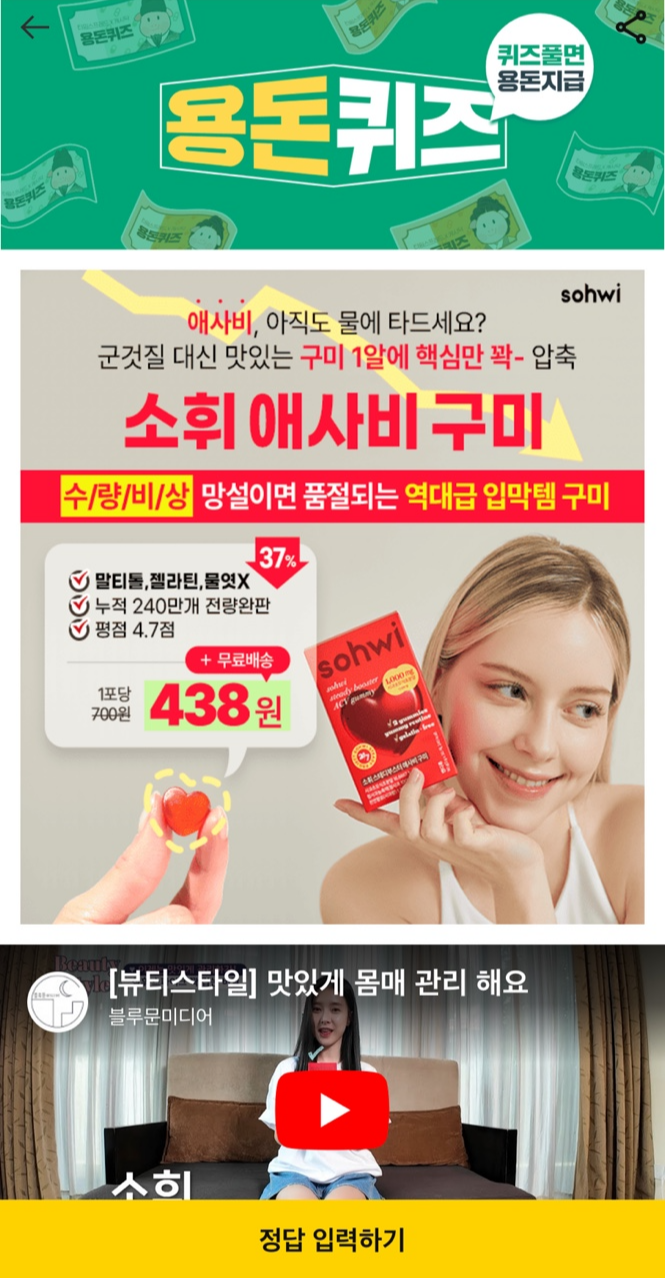 캐시닥 용돈퀴즈 7월 15일 정답 (소휘애사비구미, LG전자베스트샵, 발포로빼, 동국제약)