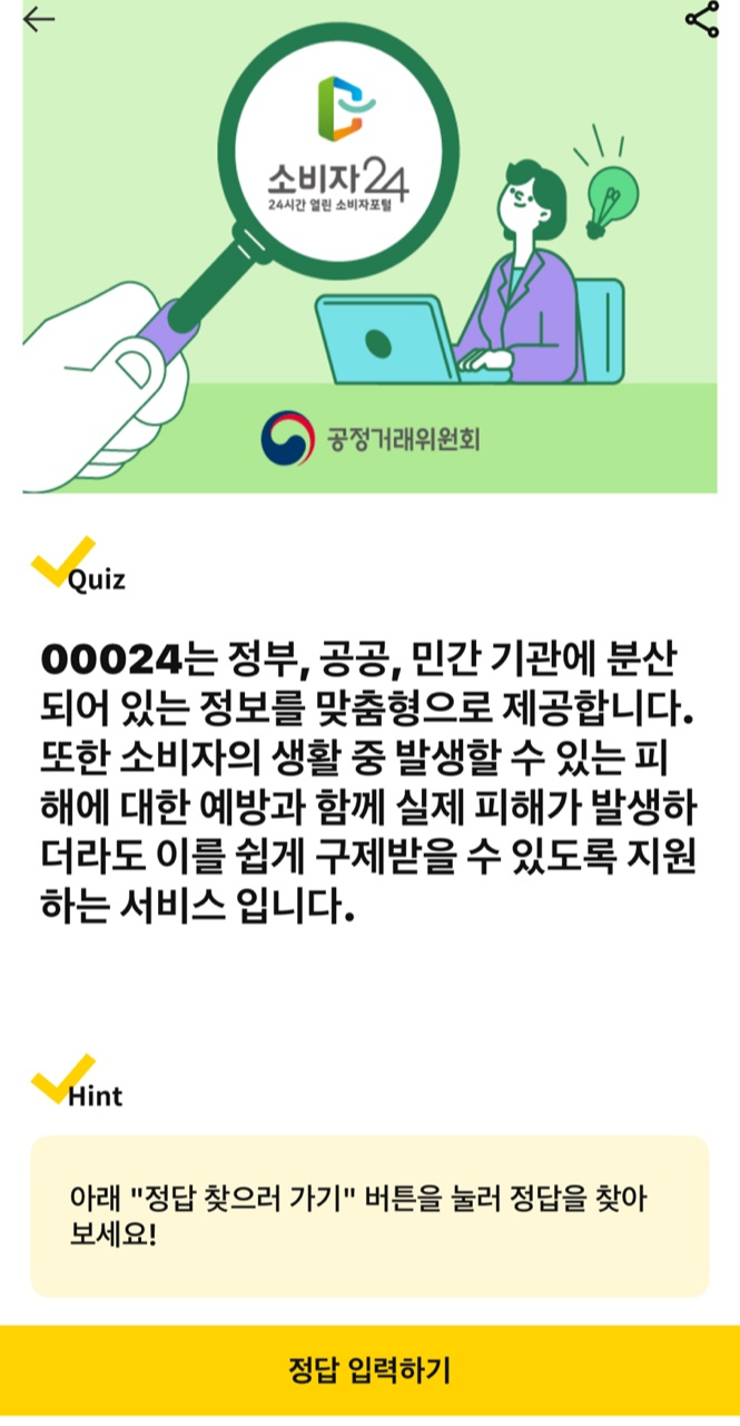 오늘은 써니팝과 소비자24 관련 문제의 정답을 알려드릴게요~