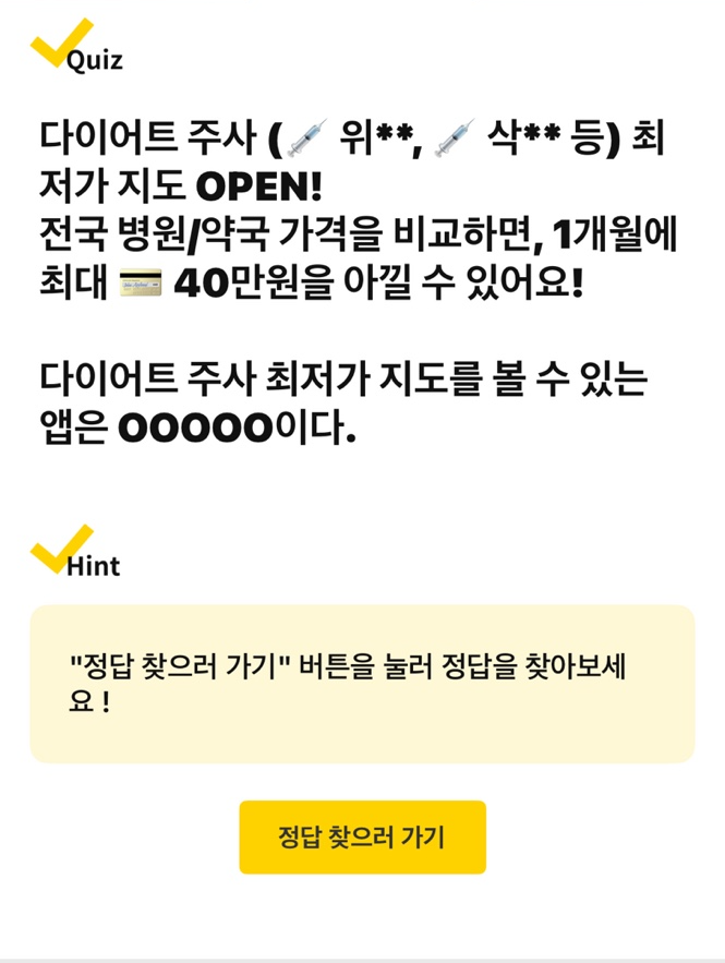 캐시닥 용돈퀴즈 (다이어트 주사)