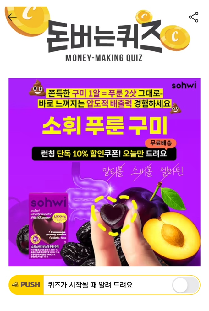 안찌는 체질의 핵심! 역대급 신상 <소휘 푸룬 구미> 압도적 배출력으로 뭘 먹어도 싹 밀어내는 체질 만들어 드릴게요. 단 7일! 런칭 10% 특가 소진시 조기종료