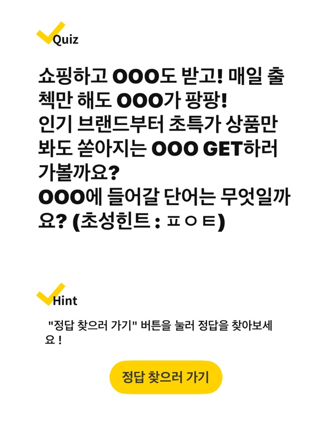 다른 정답은 '쇼핑캡슐', 포인트, 일일혜택 입니다.