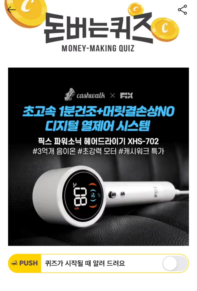 캐시워크 돈버는퀴즈 (픽스 드라이기)