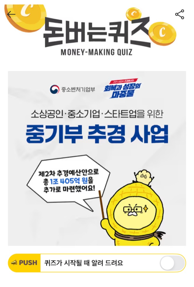 캐시워크 돈버는퀴즈 (중기부 추경사업)