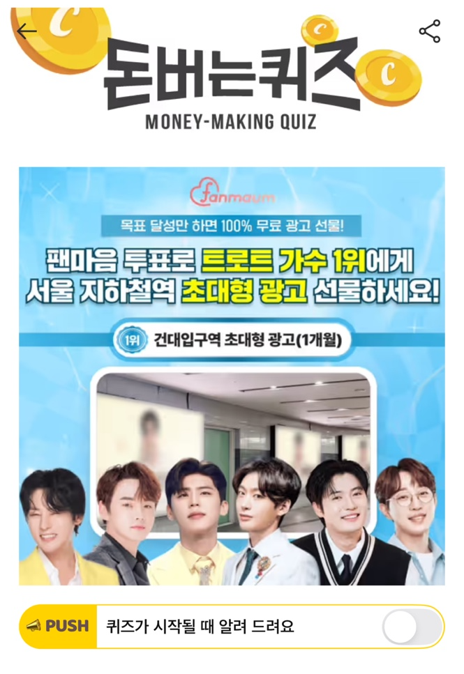캐시워크 돈버는퀴즈 (팬마음 투표)