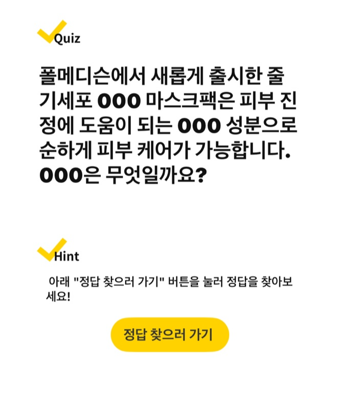 오늘은 폴메디슨에서 출시한 줄기세포 관련 퀴즈와, 제나벨 역대급 라이브 혜택까지! 총 2가지 정답 공개해볼게요~!