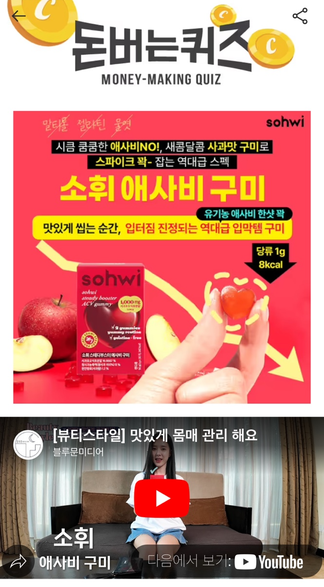 캐시워크 돈버는퀴즈 (소휘 애사비 구미)