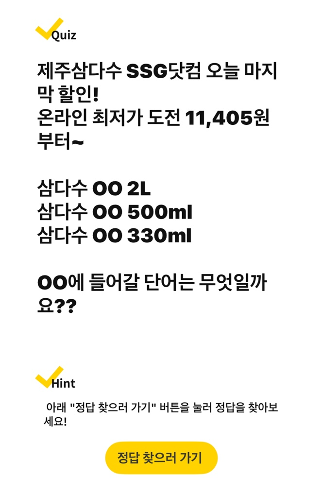 오늘도 새로운 퀴즈가 나왔는데요. 제주 삼다수와 함께한 퀴즈! 정답을 공개해볼게요.