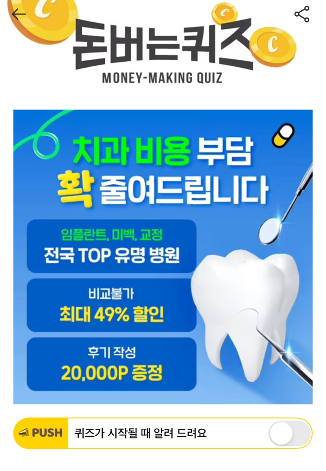 캐시워크 돈버는퀴즈 치과기획전