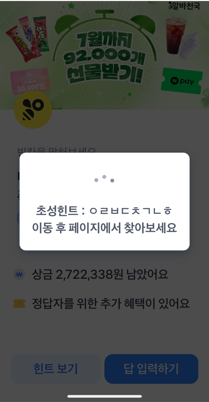 매일 알바천국 앱에서 즉석당첨 도전하세요