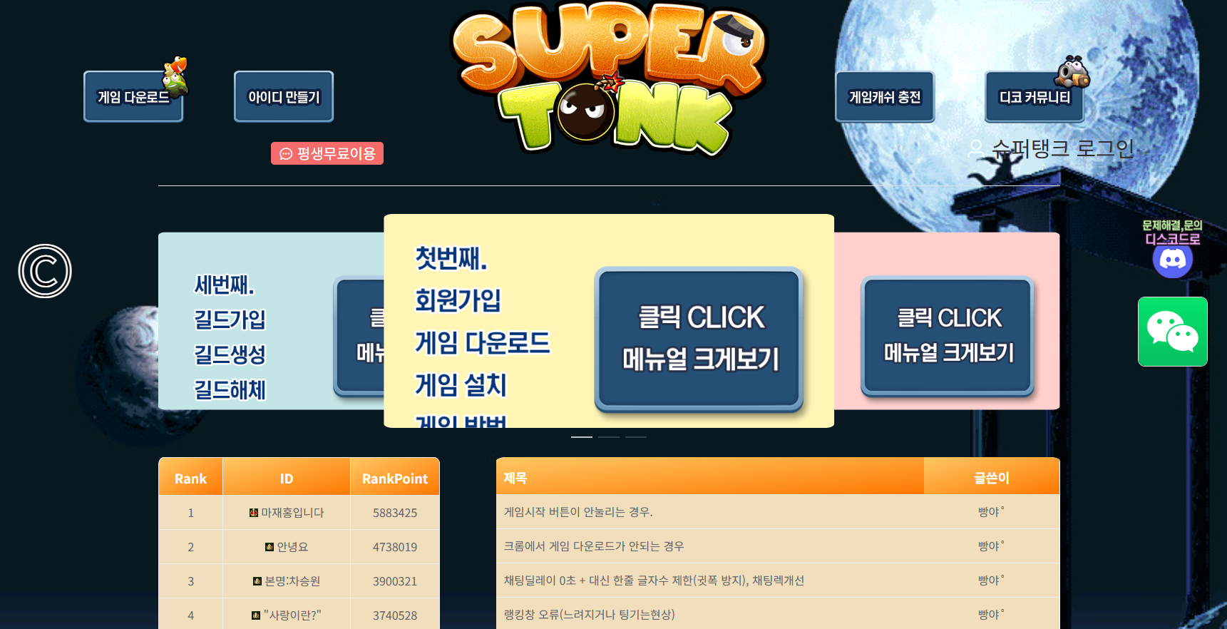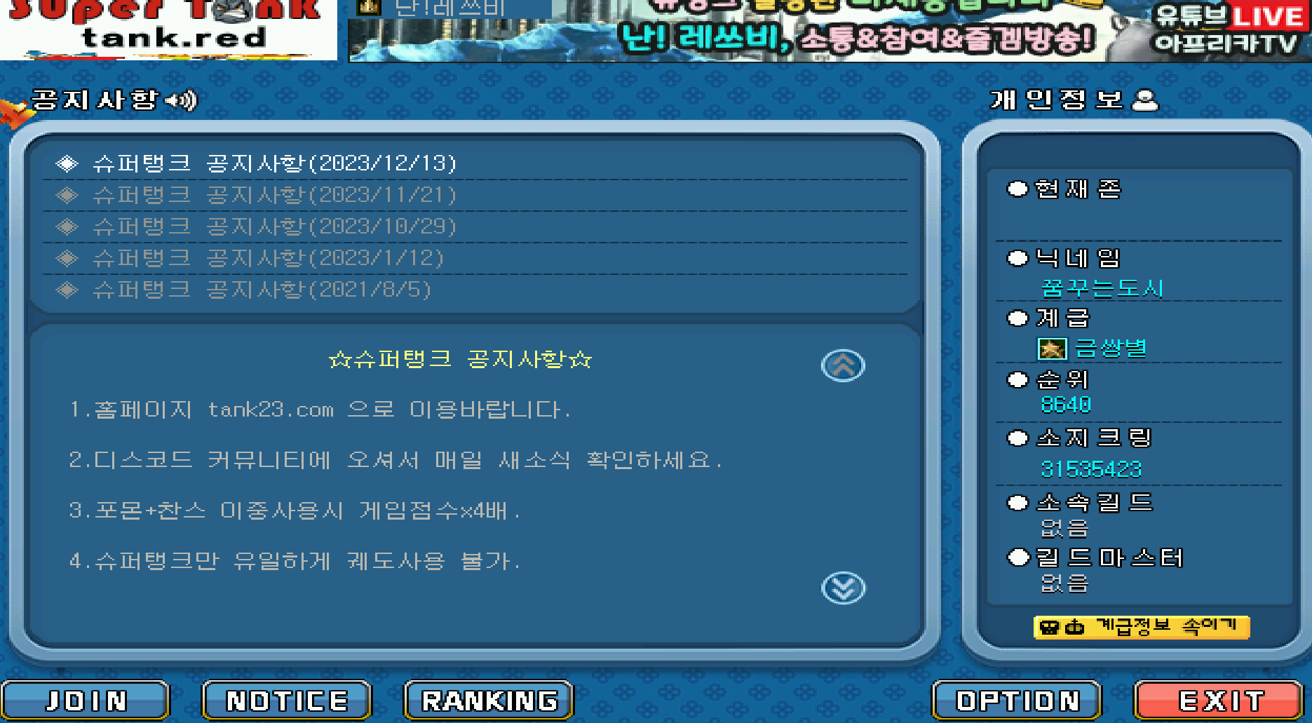 슈탱크에 들어가면 게임을 다운로드 받을 수 있습니다. 다운로드 후 회원가입, 접속을 하면 가볍게 게임을 즐길 수 있는데요, 너무 간편해서 포스팅하기 민망할 정도입니다 ㅋㅋ일단 슈탱크 서버는 굉장히 안정적이고, 버그가 따로 없습니다. 게임을 즐기다 게임이 종료가 되더라도 더블 아이템이 자동으로 구입되어 상점에 따로 들어가지 않아도 되는 점, 회오리 유무(없애도 된다는 뜻), 안개 없애기 등등의 메뉴얼이 되어 있어 게임 하는 사람들에게 편안함을 주죠! 또한 돈도 거의 무제한으로 지정해놔서 완벽 무료게임입니다 ㅎㅎ