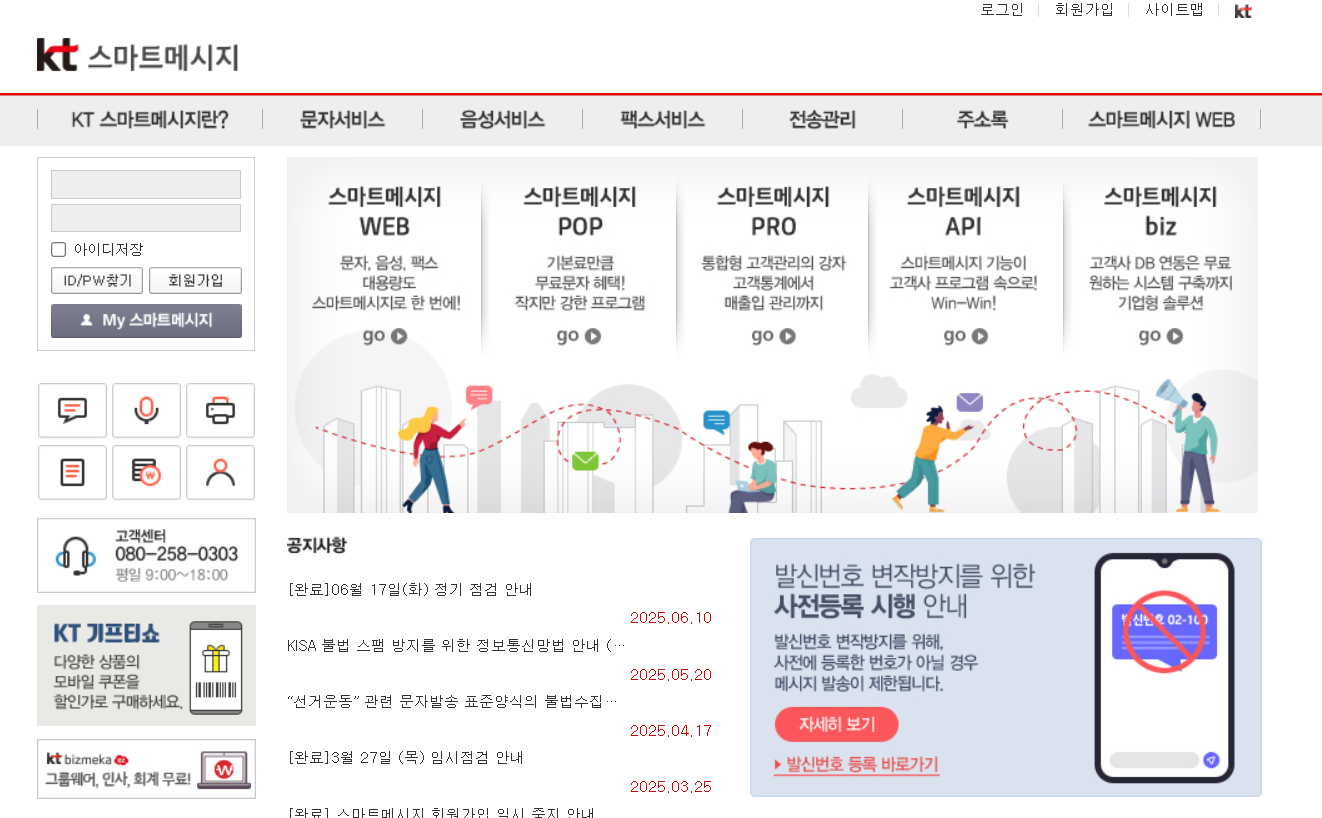 바로 이 사이트입니다. KT스마트메시지라고 네이버/구글에 검색해도 잘 나오지 않더라고요, 심지어 KT크로샷을 검색해도 잘 나오지 않아서 아래 링크에 넣어두었습니다. 아래 링크를 타고 들어가면 이 사이트가 접속될겁니다.